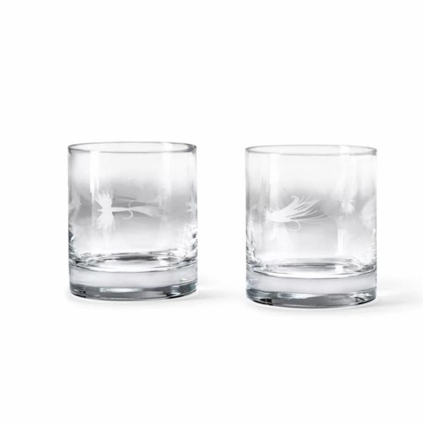 Our fly fishing Old-Fashioned cocktail glasses are the ideal set for any angler who loves a good cocktail. These two sleek Italian glasses serve up a Manhattan or mojito with a fly fishing scene on the side. The cut and polished rim provides the perfect sip after a day on the water.