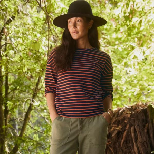 - Casual boatneck style with classic stripes