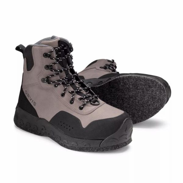 The Men’s Clearwater felt sole wading boot is built with a full synthetic leather upper that provides comfort and durability without excessive seams. The boot is protected by a scratch rubber toe, vamp, and heel counter for added durability, and a heavy-duty rubber toe bumper protects the foot in tough wading conditions. An integrated EVA foam footbed offers all-day comfort and a wider fit. A Phylon midsole and ESS plate provide stability and excellent stud retention. The rubber outsole option has an aggressive lug design and strategic stud locations for enhanced grip. A complete upgrade of the best value-priced wading boot on the market.